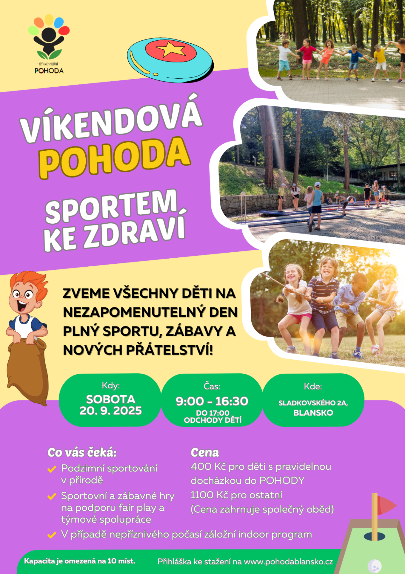 S radostí vám představujeme první Víkendovou POHODU, která se uskuteční v sobotu 20. září 2025. Téma celé akce bude "Sportem ke zdraví", což slibuje den plný pohybu, zábavy a výjimečných zážitků.