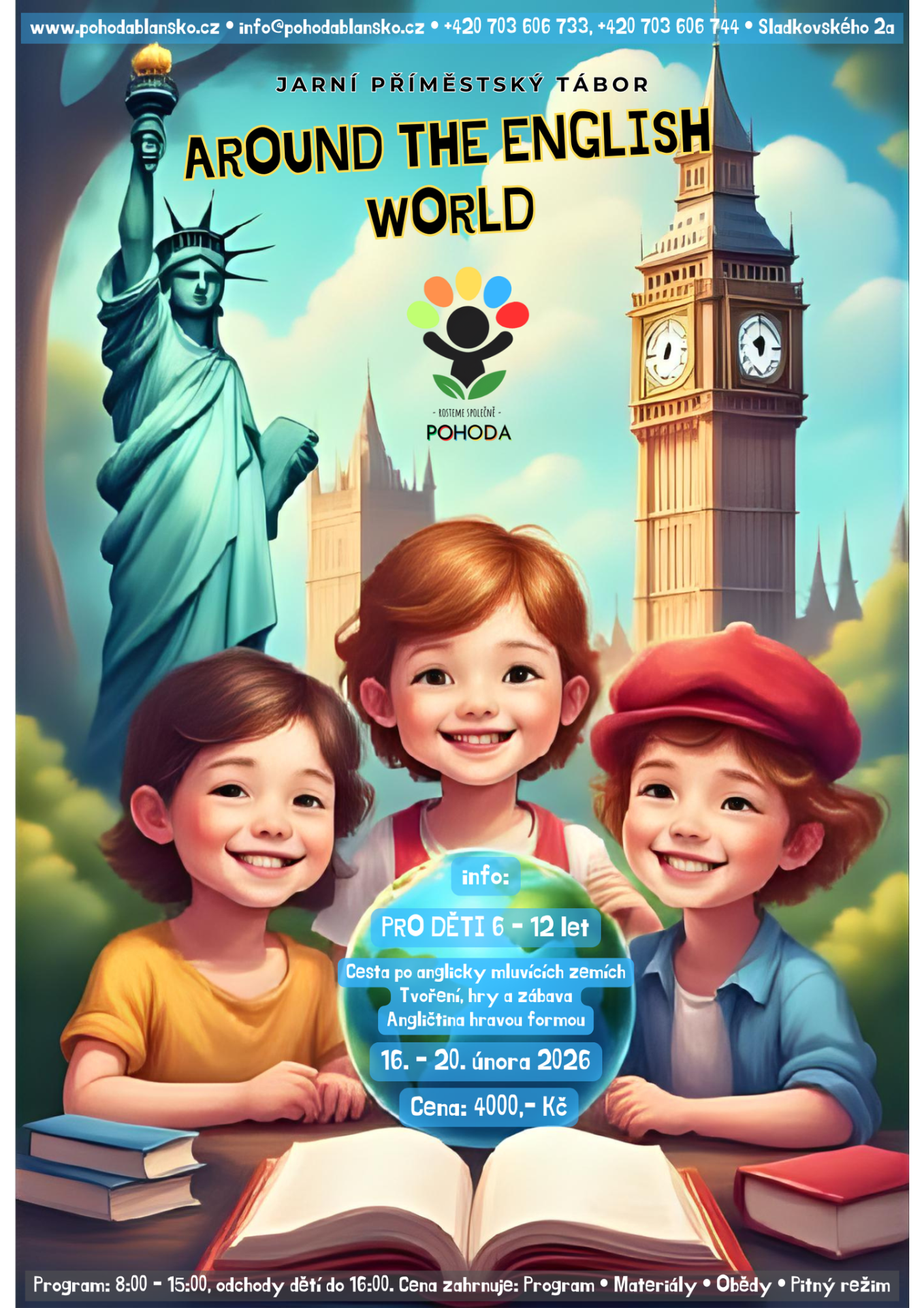 Víme, že zima a únor není úplně ideální na venkovní dovádění, ale to nám vůbec nevadí! Připravili jsme pro vaše děti příměstský tábor Around the English World, kde se vydáme na dobrodružnou cestu po anglicky mluvících zemích – a to v teple a pohodlí našeho centra. 😊